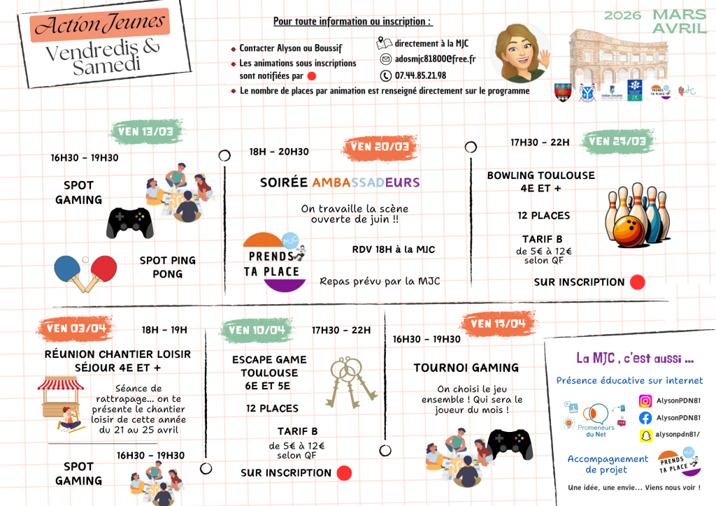 Pour plus d’infos, contacter l’Action Jeunes à adosmjc81800@free.fr ou directement ici