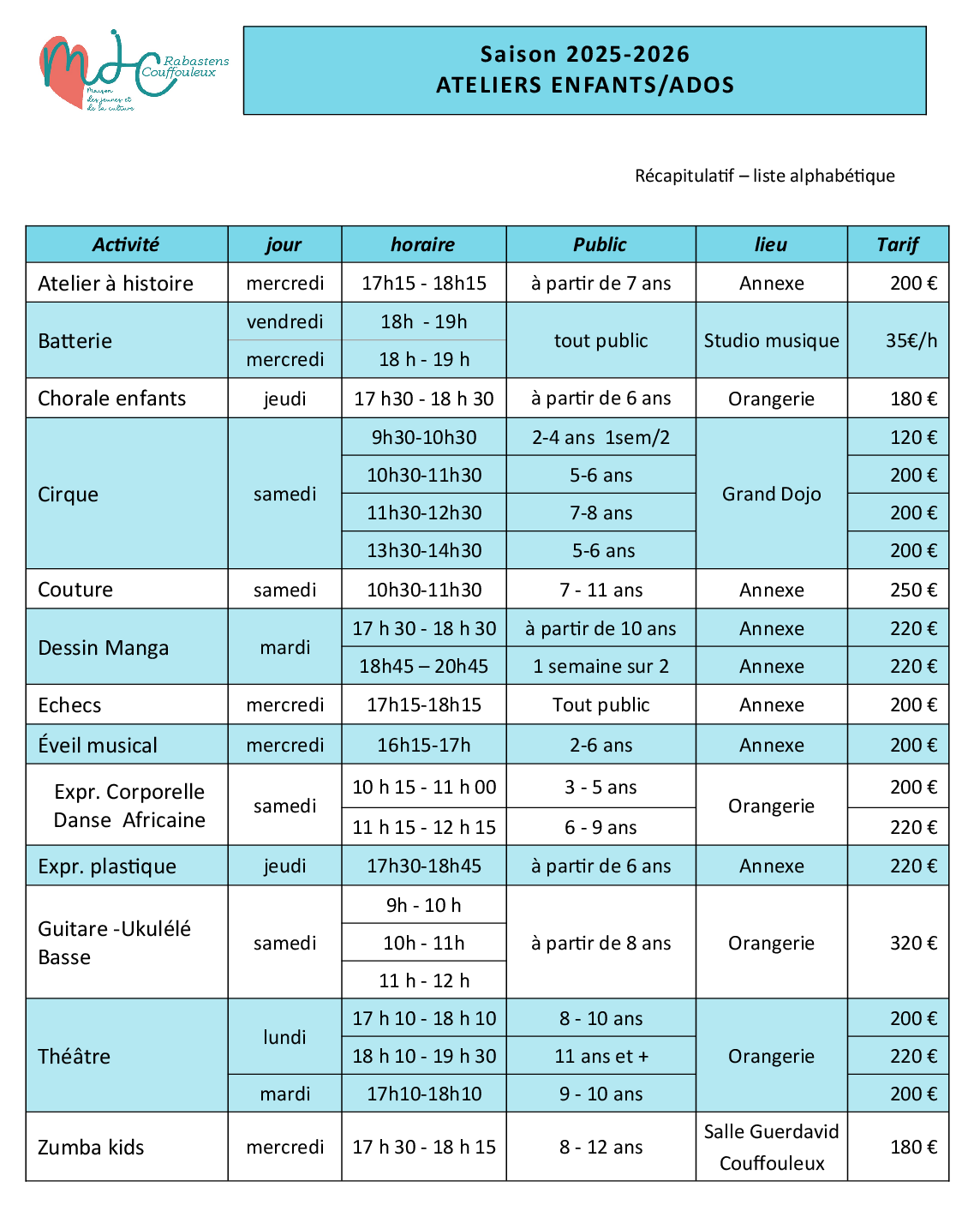 La MJC propose plus de 30 activités pour adultes, ados et enfants.